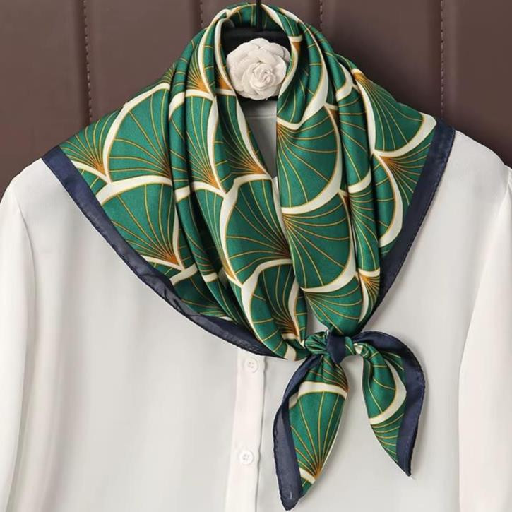 Emerald Green Gold Silk Hair Scarf Tie 75 x 75cm, Women's Bandana Neck Scarf