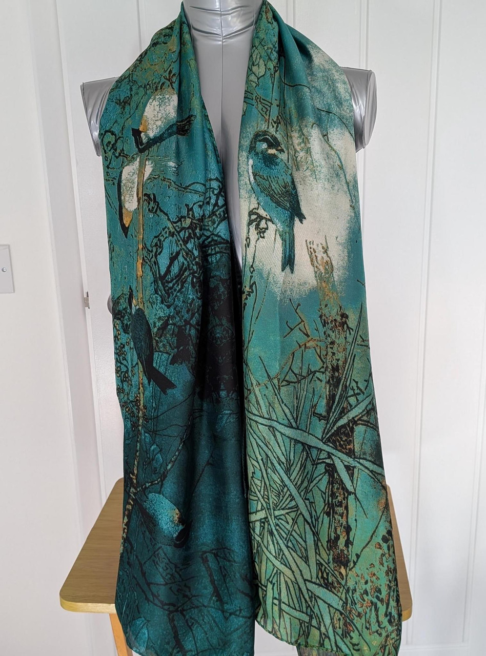 Soft Silk Scarf, Green Gold Silk Scarf, Exotic Bird Design Scarf, Emerald Green Scarf, Gift For Her, Women's Head Neck Shawl, Silk Scarves, Luxury Scarf