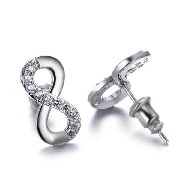 925 Eternity Infinity CZ Crystal Stud Earrings Sterling Plated Silver + Bag UK