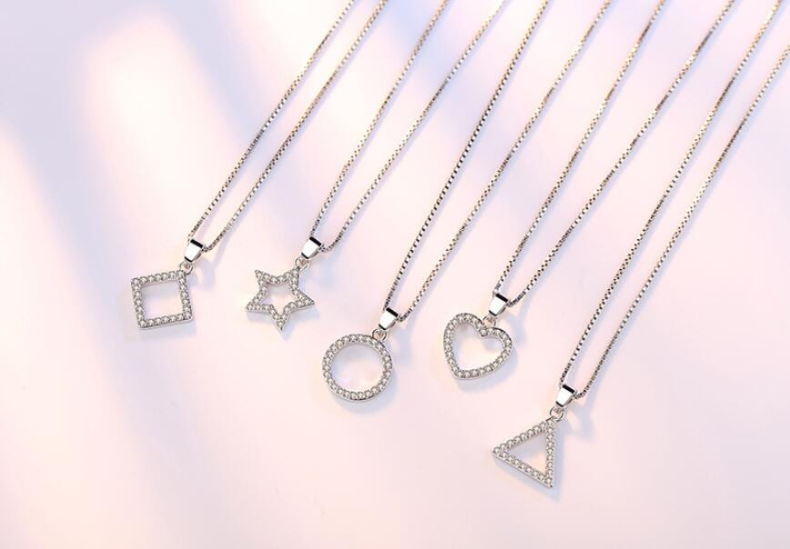 925 Heart Circle Crystals Sterling Silver Plated Pendant Necklaces + Bag