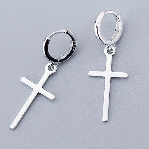 925 Silver Plated Cross Crucifix Drop Earrings + Bag UK