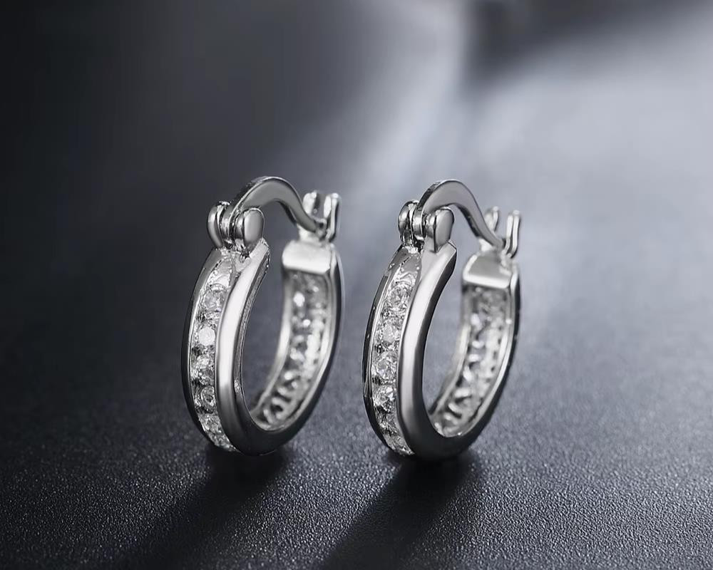 925 Sterling Silver Plated Crystal CZ Huggies/Hoops/Sleepers 10mm + Bag UK