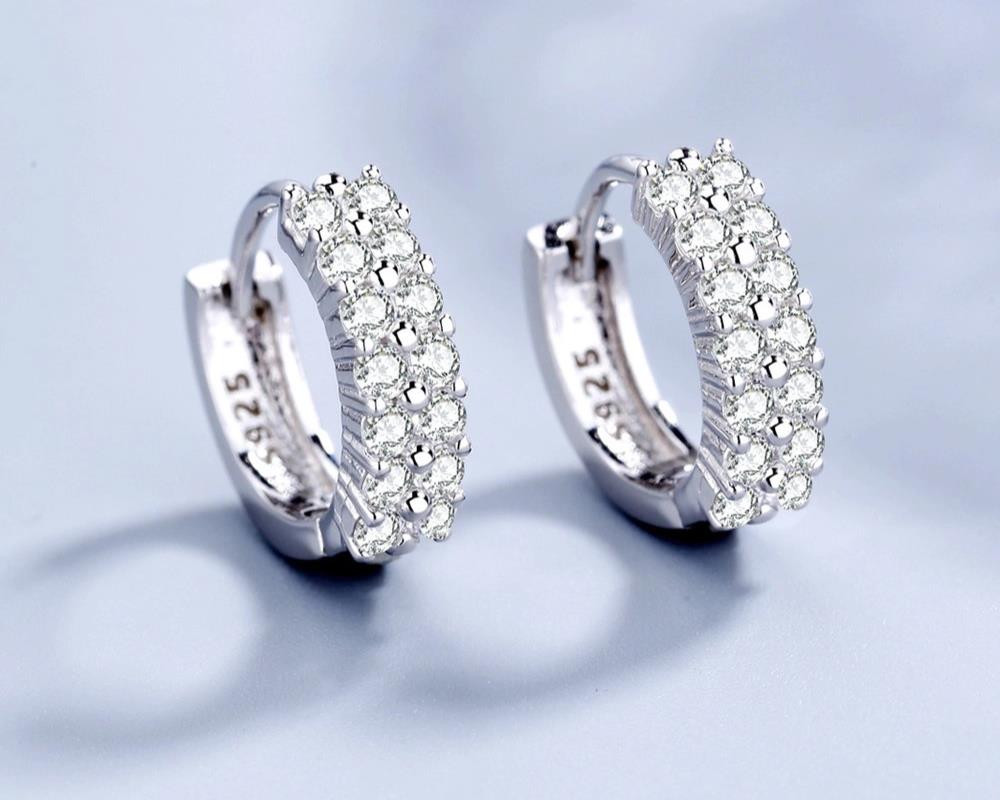 925 Sterling Silver Double Crystal CZ Huggies/Hoops/Sleepers 10mm + Bag UK