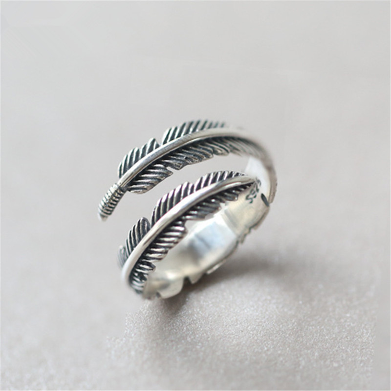 925 Sterling Silver Leaf/Feather Angel Memory Ring Adjustable Finger Thumb Band