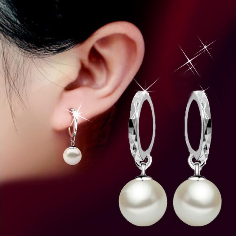 925 Sterling Silver Pearl Drop Hook Dangle Earrings Womens Jewellery + Bag