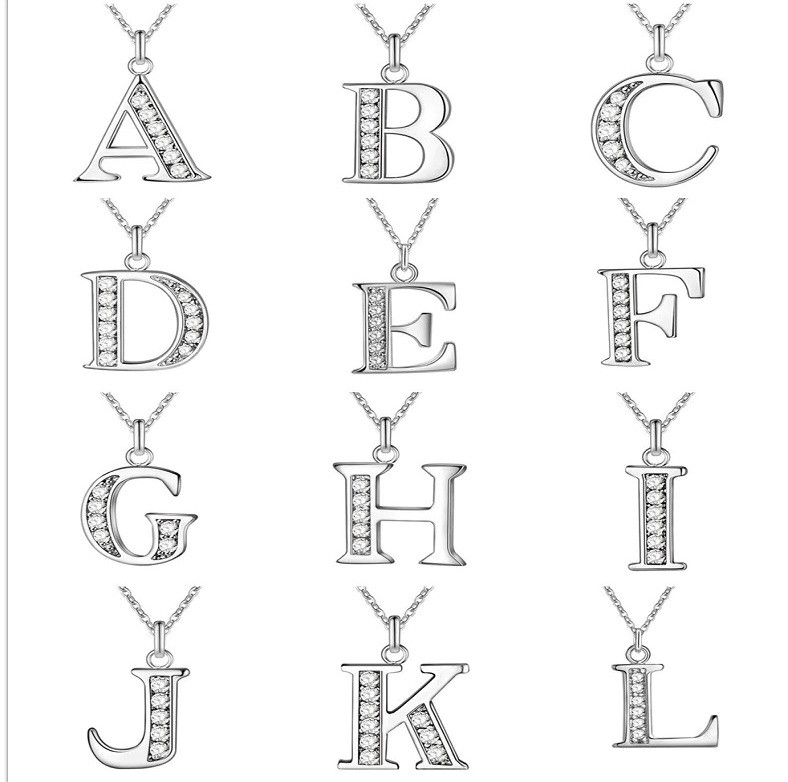 925 Sterling Silver Plated A-Z Letter Alphabet Pendant Chain Necklace Crystal + Free organza Bag