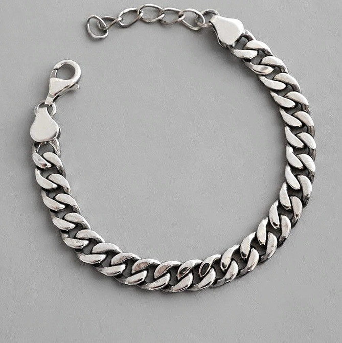 925 Sterling Silver Plated Curb Chain 8 mm Bracelet 16+4 cm