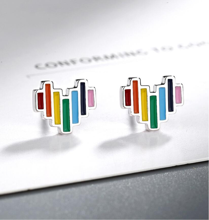925 Sterling Silver Plated Rainbow Stud Earrings + Bag UK