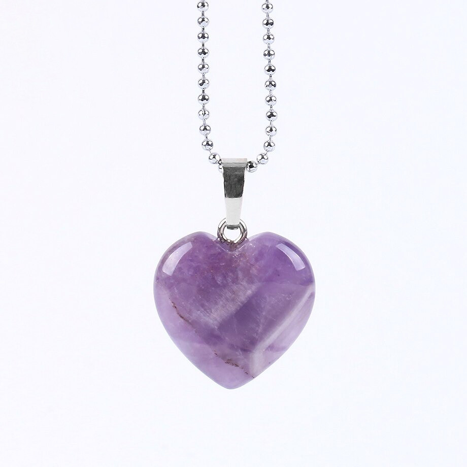 Amethyst Love Heart Necklace Silver Gemstone Reiki Chakra Healing + Bag