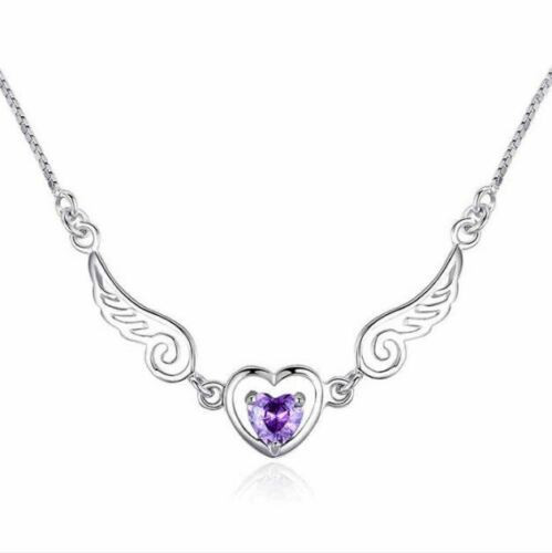 Purple Angel Wing Heart 925 Silver Plated Pendant Chain Necklace Womens +Bag UK