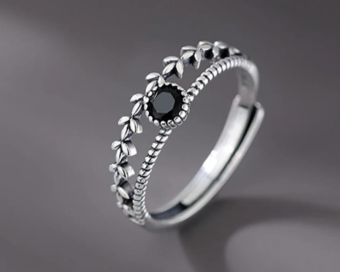 Black Onyx Silver Leaf Ring ,Adjust Ring For Women, Gemstone Ring