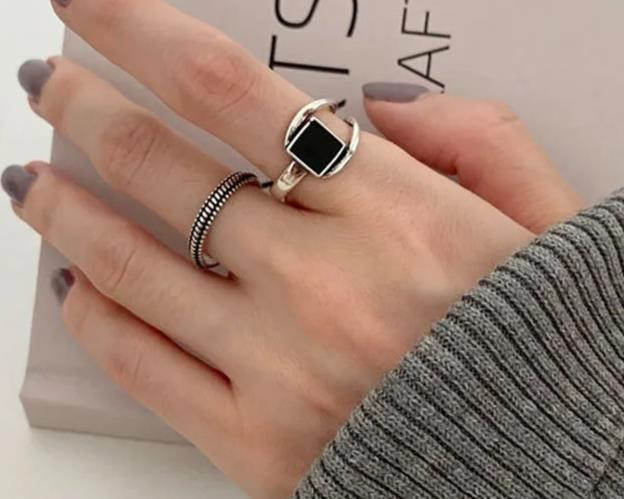 Black Onyx Stone Silver Ring Set Silver, Cubic Zirconia Ring, Adust Ring Women