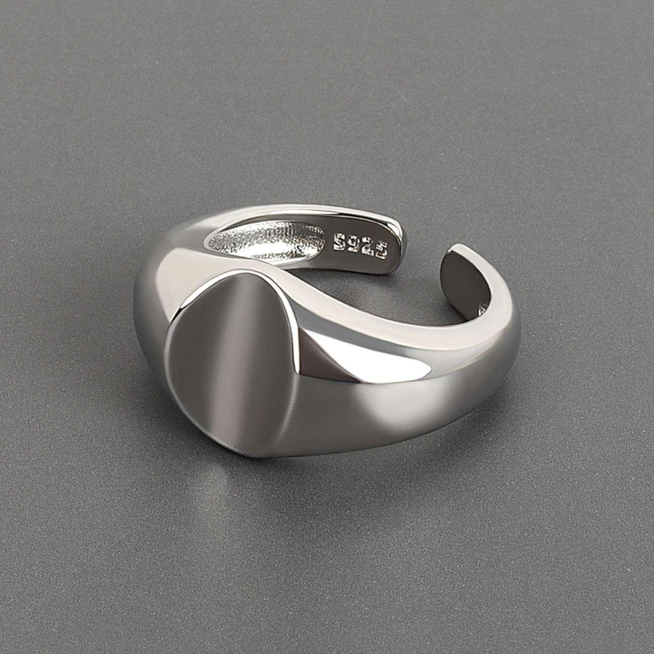 Chunky Signet Style Ring Sterling Silver Plated Adjustable Open Finger + Bag