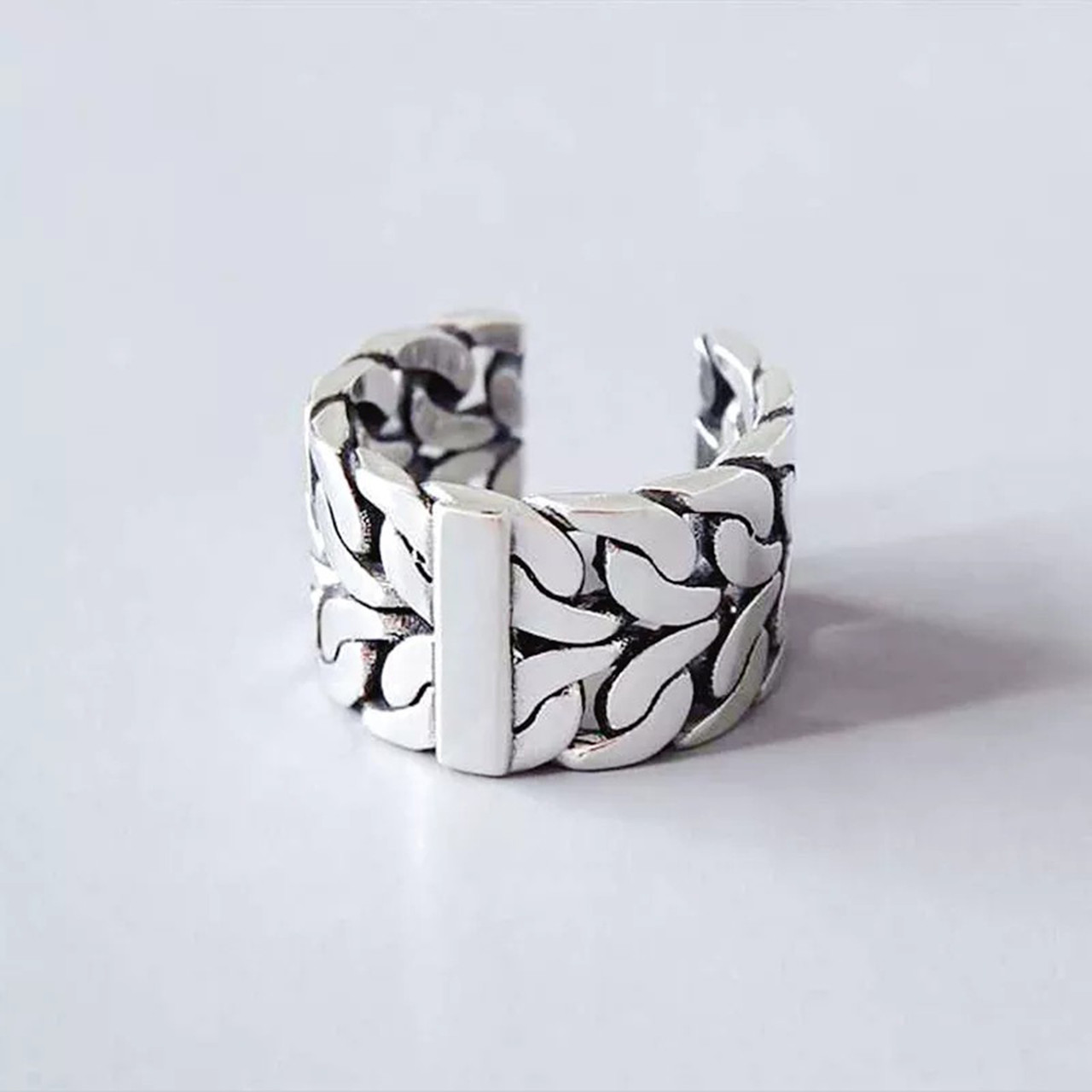 Chunky Curb Chain Belt Buckle Ring 925 Sterling Silver Plated Adjustable Open UK