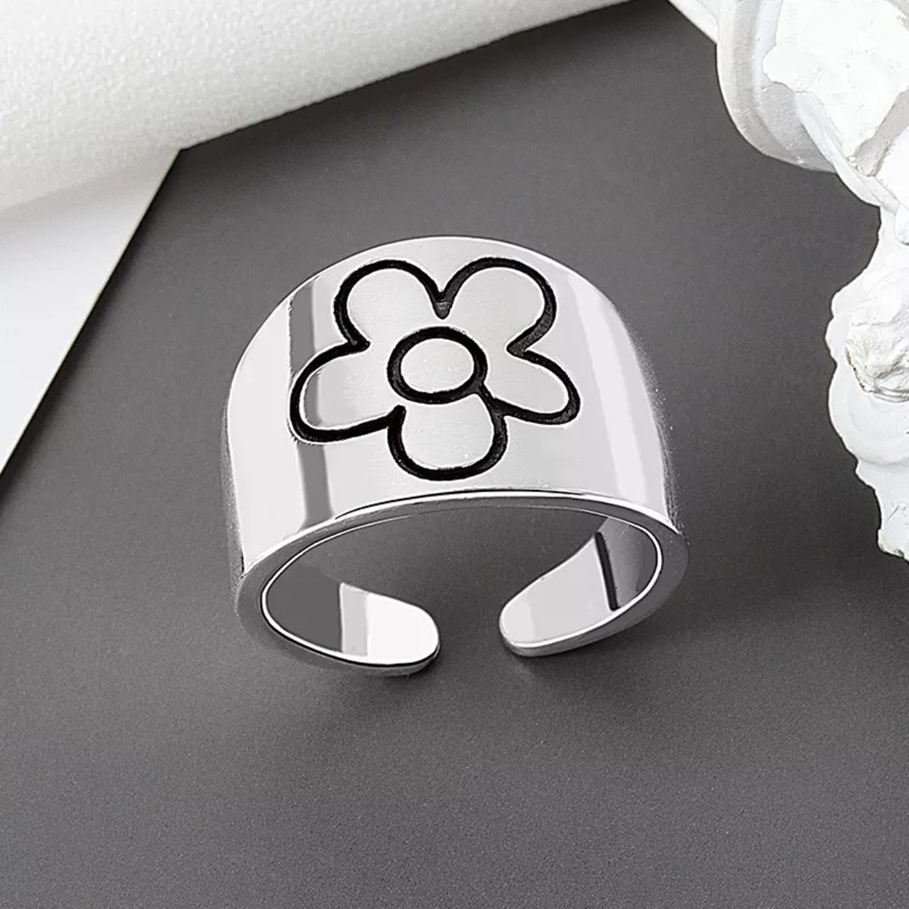Chunky Daisy Flower Statement Ring Sterling Silver Plated 925 Finger Adjustable + Bag