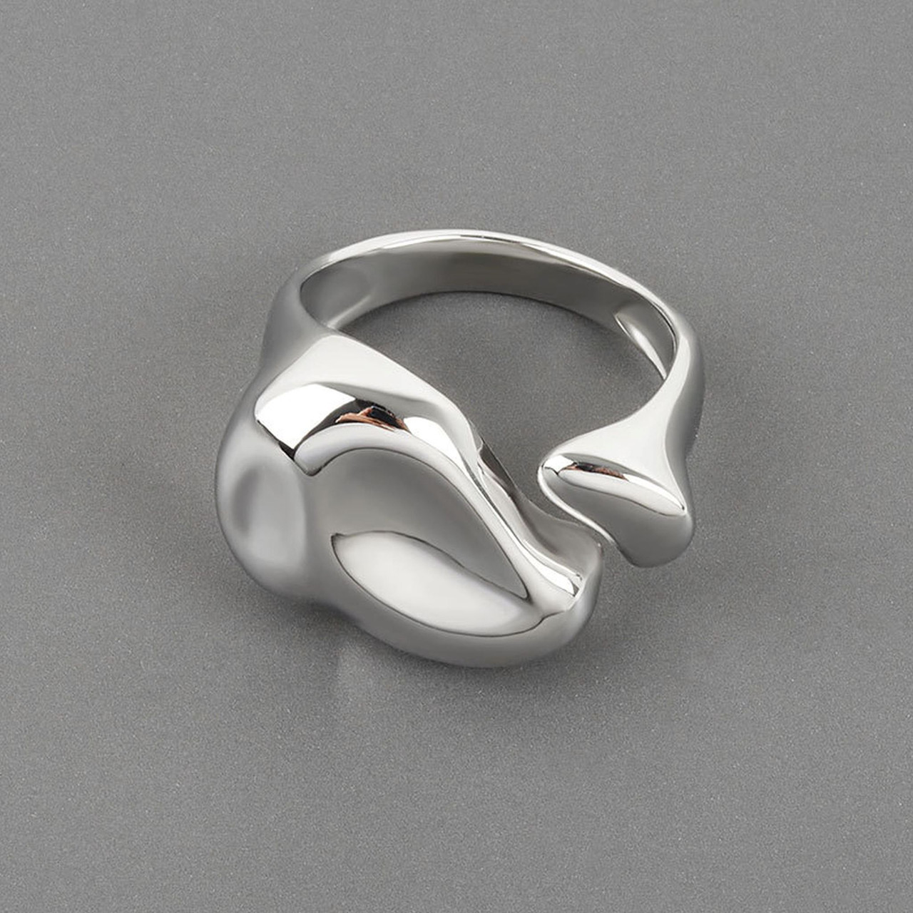 Chunky Irregular Abstract Blob Ring Molten Liquid Metal Drip Silver Plated Adjustable/Resizeable Open Band