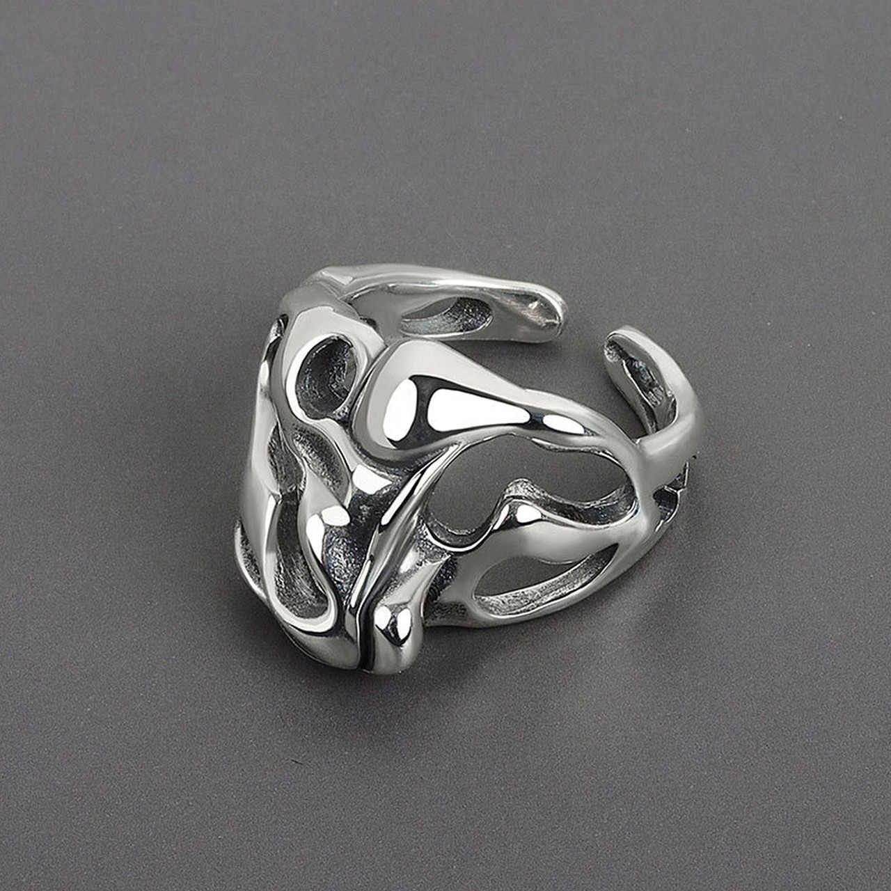 Chunky Irregular Abstract Molten Liquid Metal Blob Ring For Women Silver Plated Adjustable/Resizeable Open Band