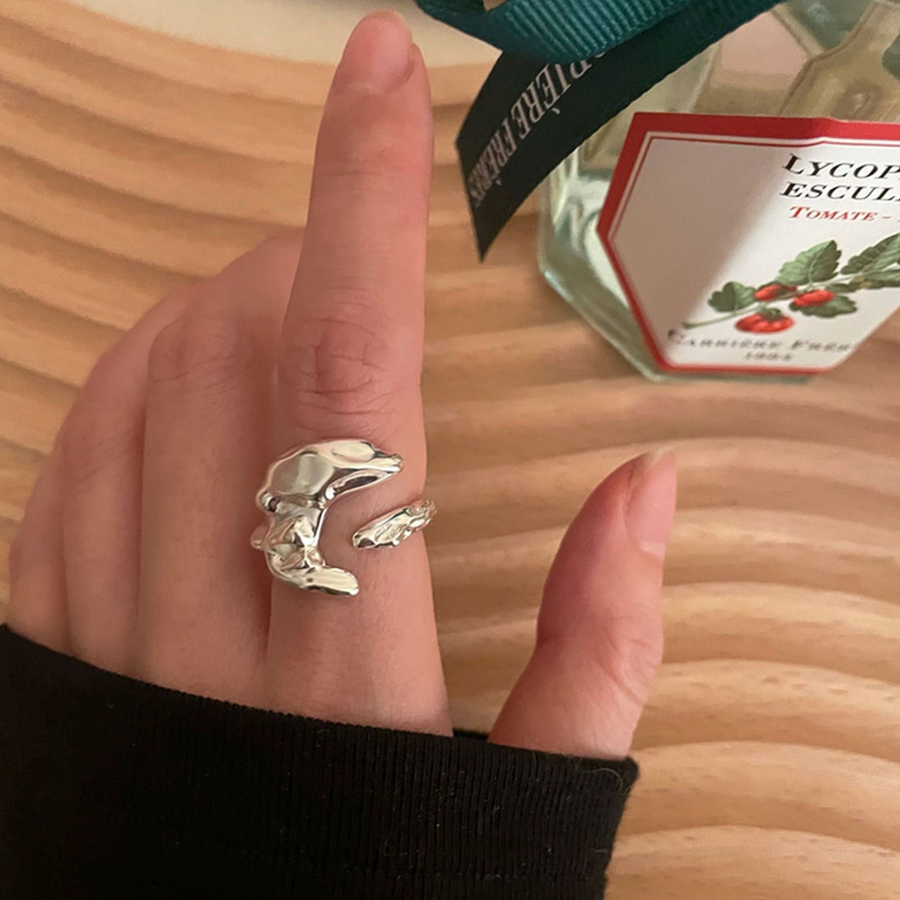 Chunky Irregular Moon Shape Molten Liquid Metal Ring Women Silver Plated Adjust