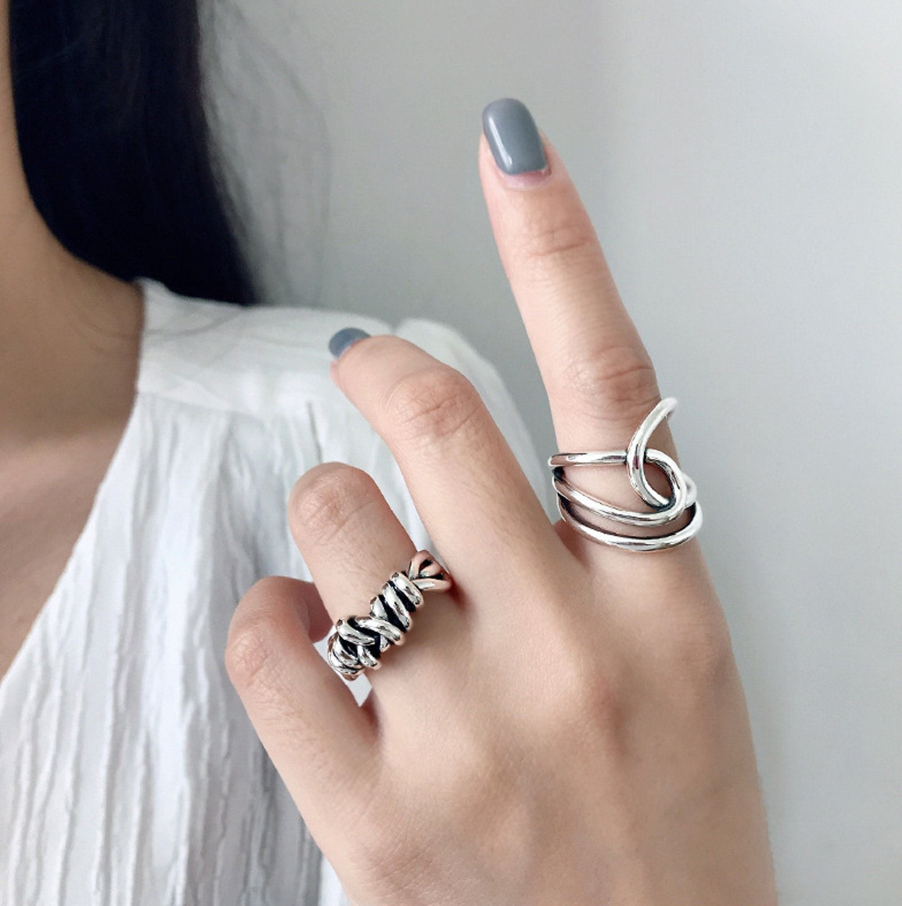 Chunky Minimalist Abstract Silver Plated Ring For Women Twist Weave Adjustable T