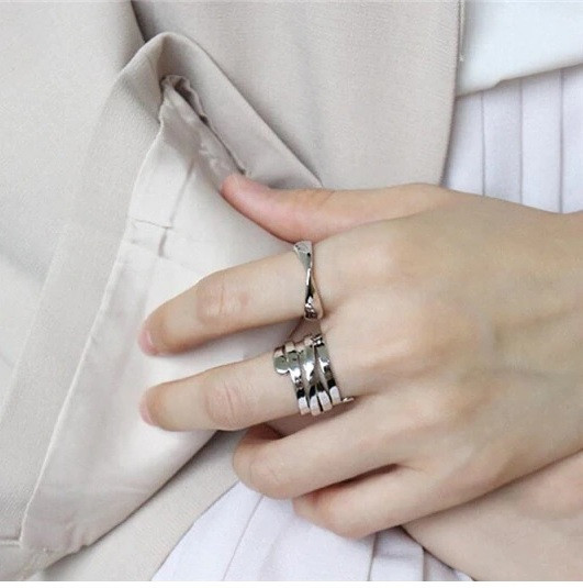 Chunky Multi Layer Wrap Thumb Finger Ring Silver Plated Adjustable Open