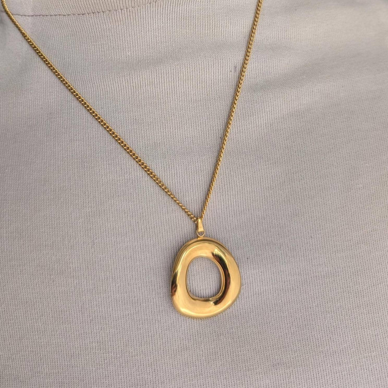 Chunky Oval Gold Pendant Necklace, Mobius Molten Liquid Irregular Lava Style, Circle Necklace Gold 18" Chain Extender, Geometric Charm Necklace