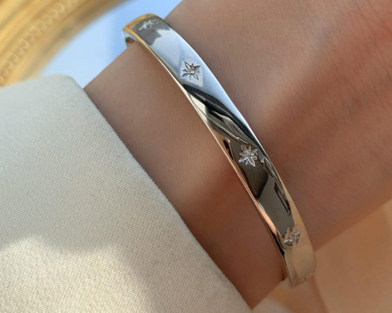 Chunky Silver Adjustable Bangle Bangle + Crystals | Open Band Cuff Bangle, Silver Bracelet,Unisex Plain Bangle |