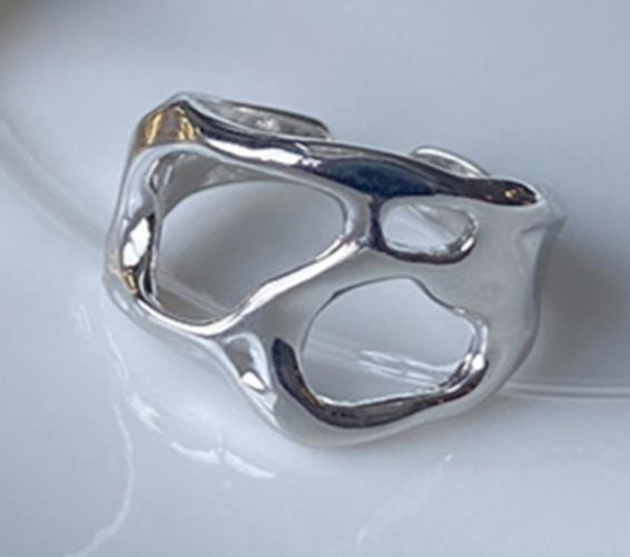 Chunky Silver Plated Ring Women Liquid Metal Molten Ring Adjustable UK