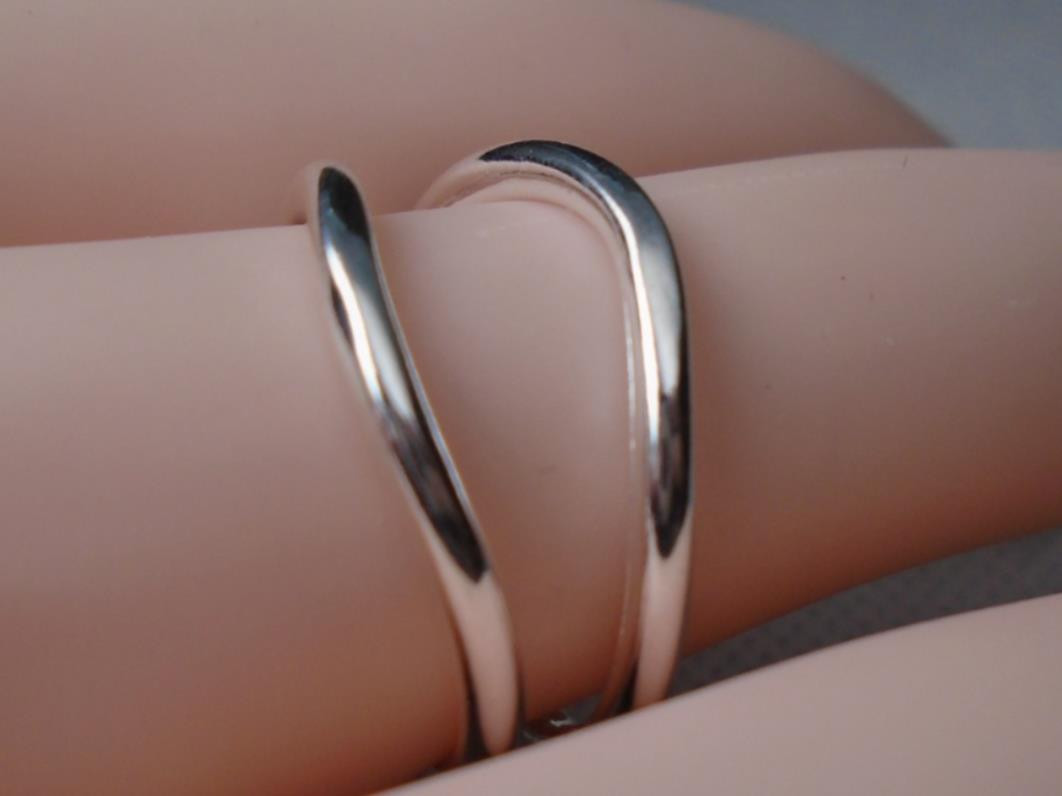 Chunky Silver Plated Wavy Ring For Women, Double Ring Adjustable,