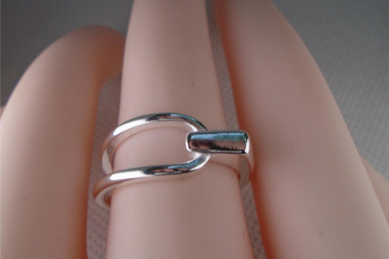 Chunky Silver Plated Wavy Ring For Women, Double Ring Adjustable UK
