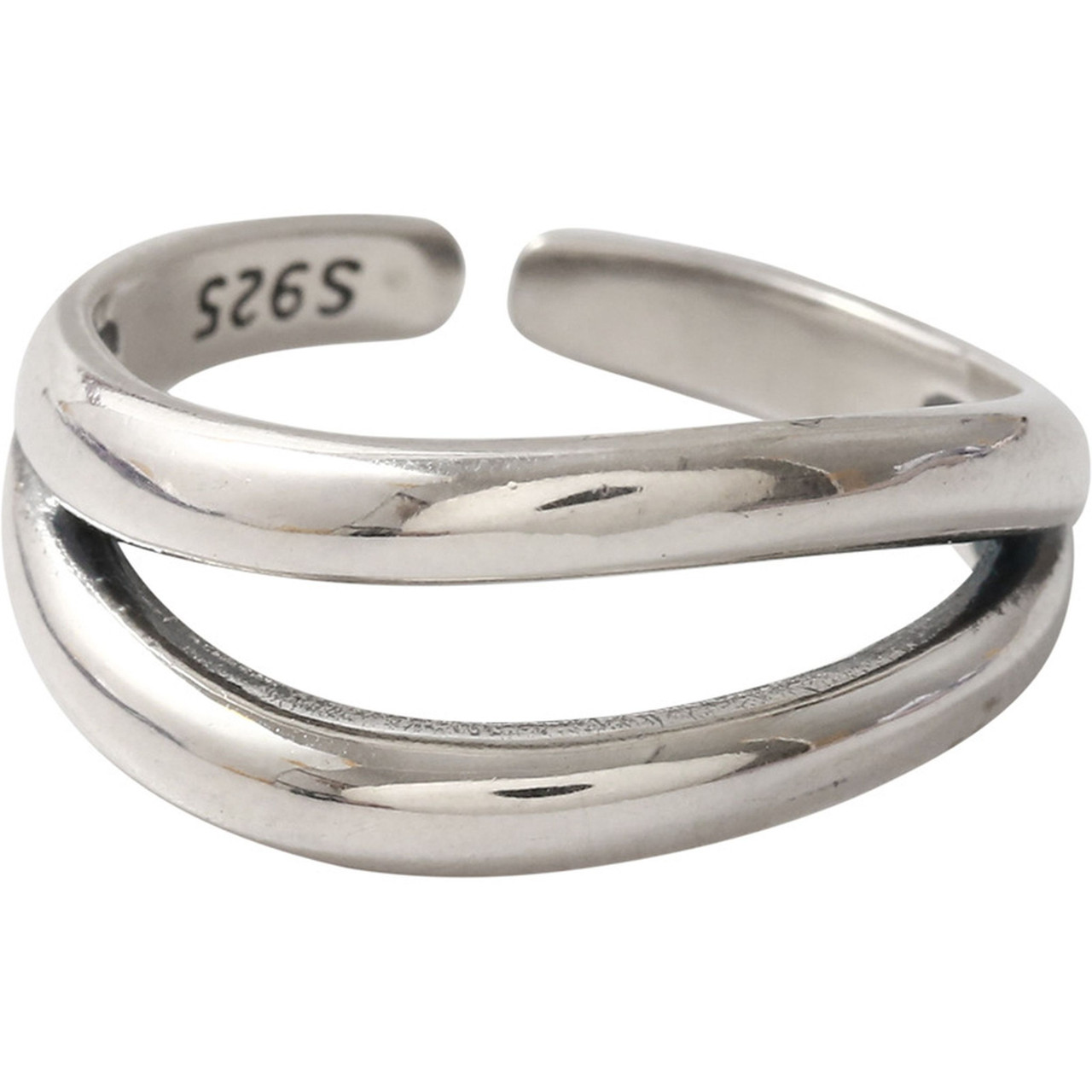Chunky Silver Plated Wavy Ring For Women, Double Ring Adjustable,