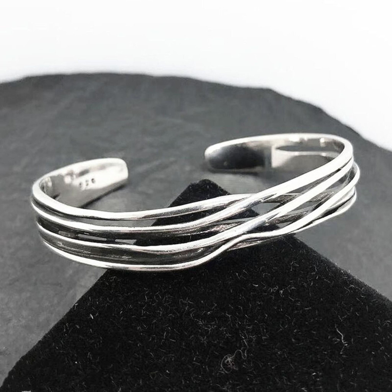 Chunky Twist Silver Bangle | Open Cuff Bangle | Adjustable Silver Bracelet | Min