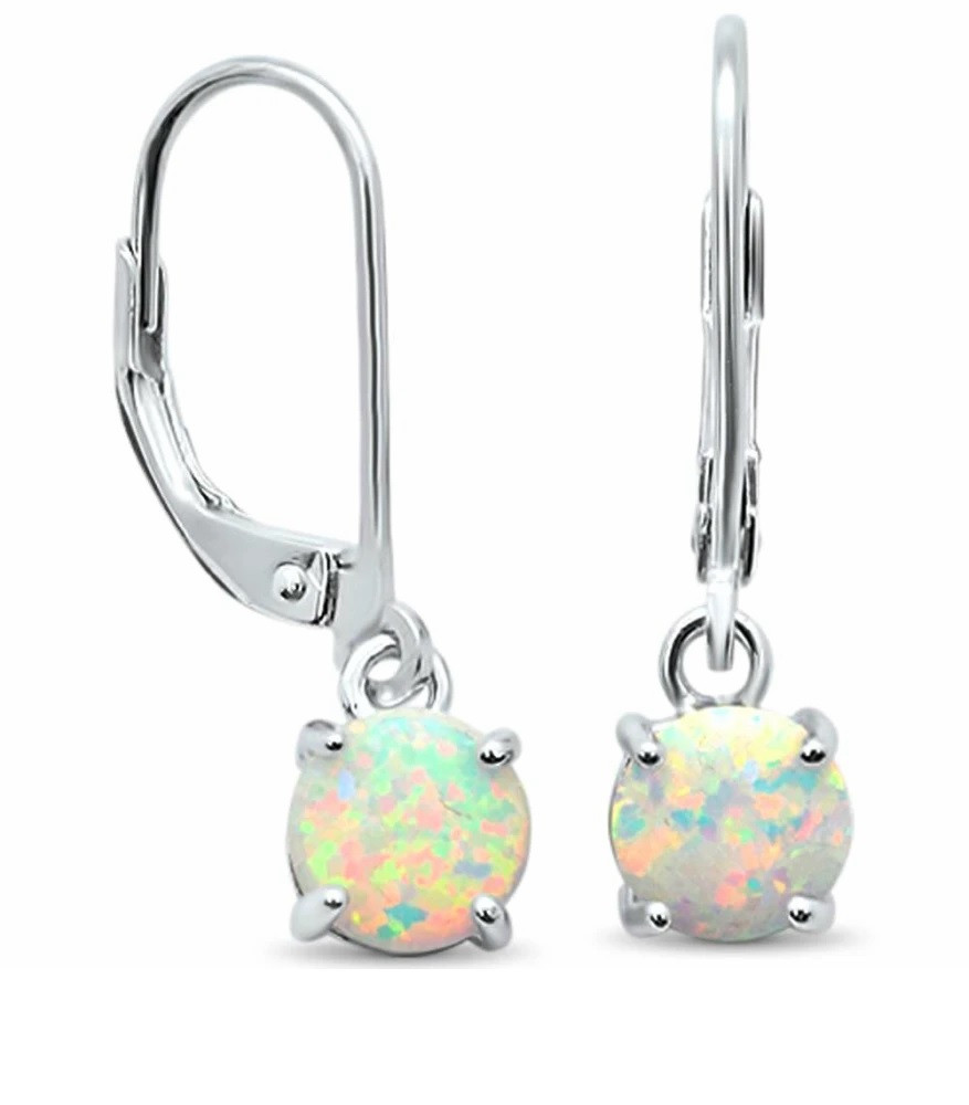Classic 925 White Fire Opal Round Drop Earrings Crystal Sterling Silver UK+Bag
