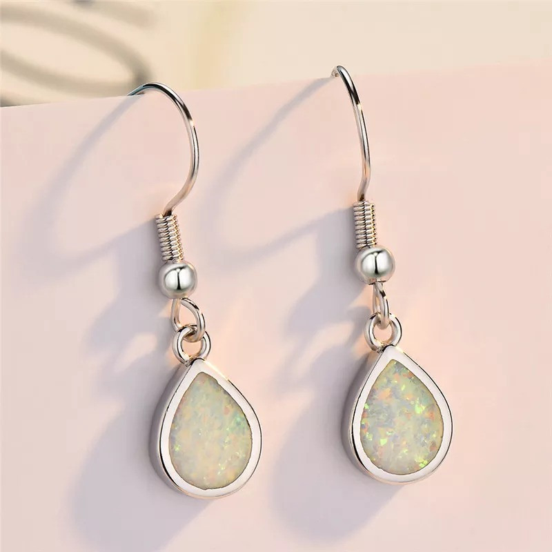 Classic 925 White Fire Opal Tear Water Drop Earrings Sterling Silver UK + Bag