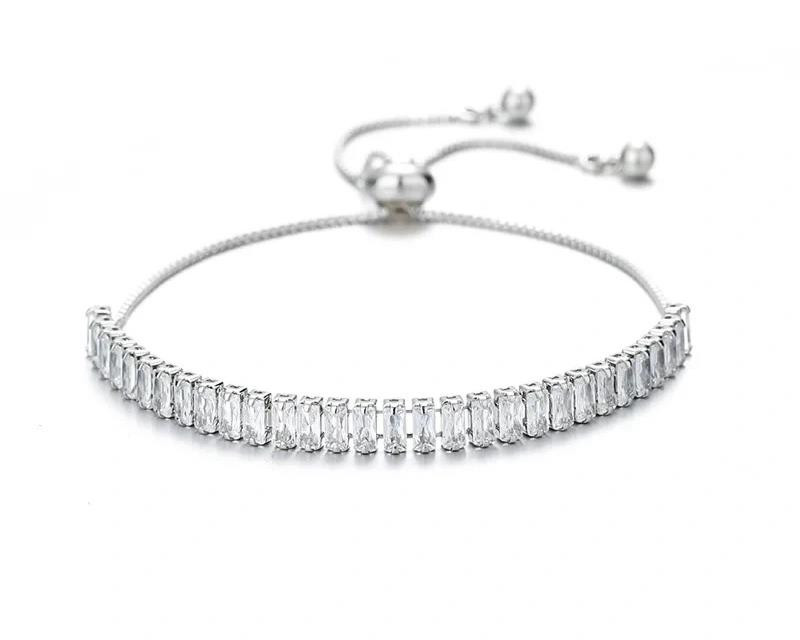 Crystal Bracelet Sterling Silver Plated 4mm Cubic Zirconia Slider Adjustable