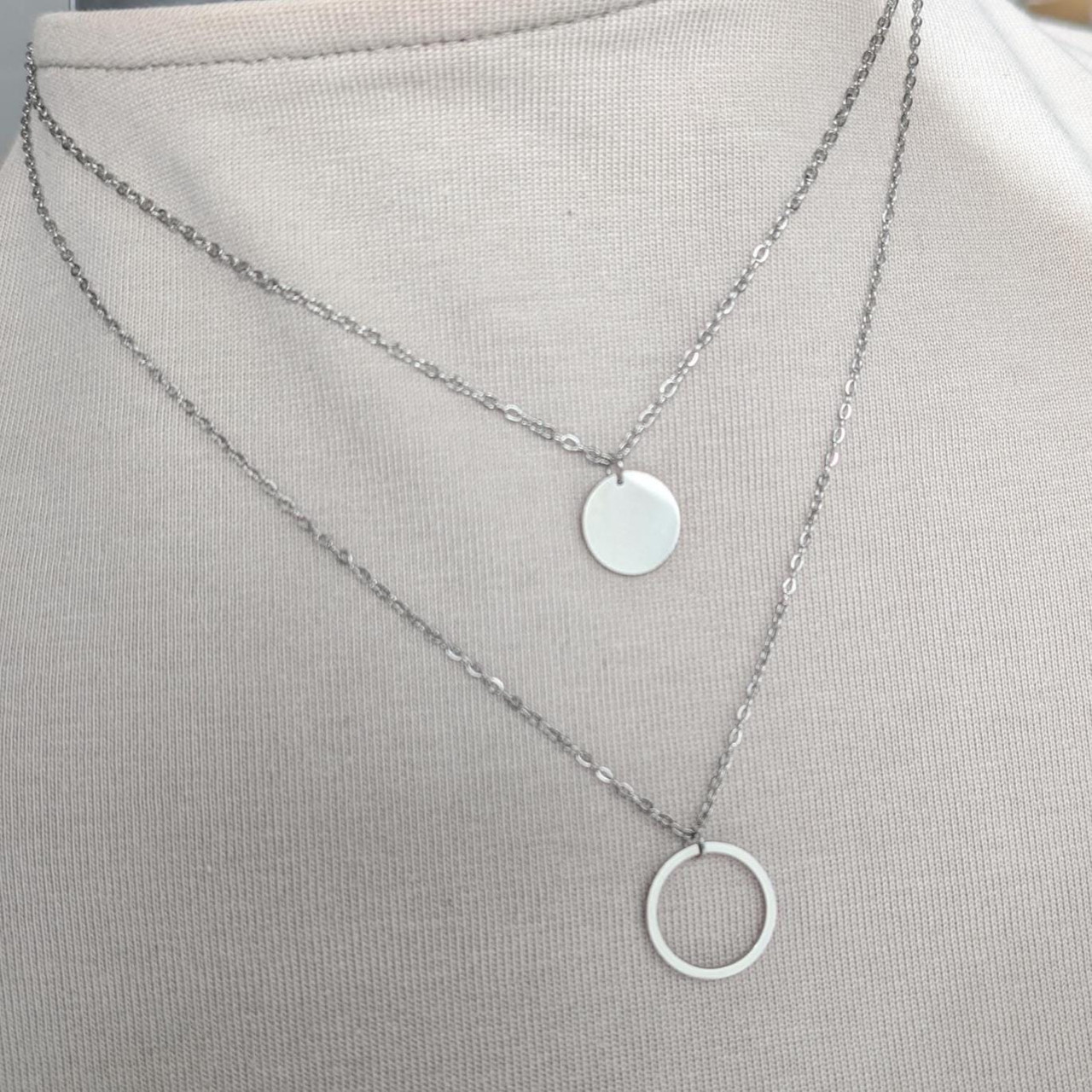 Double Pendant Necklace, Circle & Disc Layered Necklace Stainless Steel,