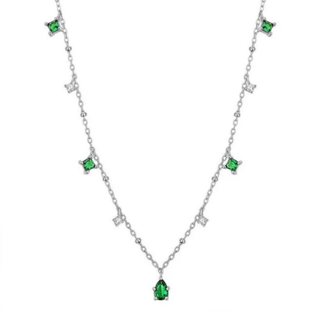 Emerald Green CZ Silver Necklace Cubic Zirconia Crystals 40cm + 5cm