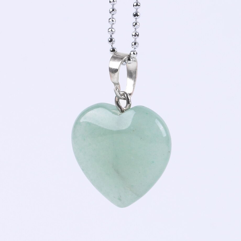 Green Aventurine Love Heart Necklace Silver Gemstone Reiki Chakra Healing + Bag