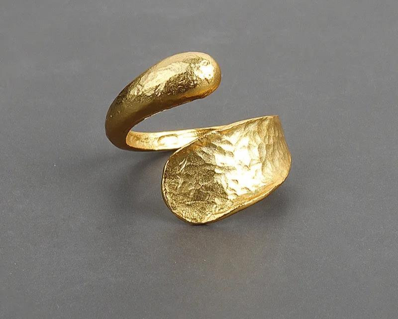 Hammered Effect Tear Drop Ring Gold Plated Adjustable
