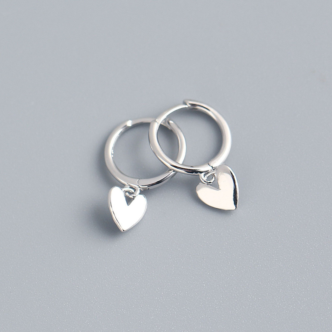 Heart Drop Earrings Huggies/Hoops/Sleepers Dangle Sterling Silver Plated + Bag
