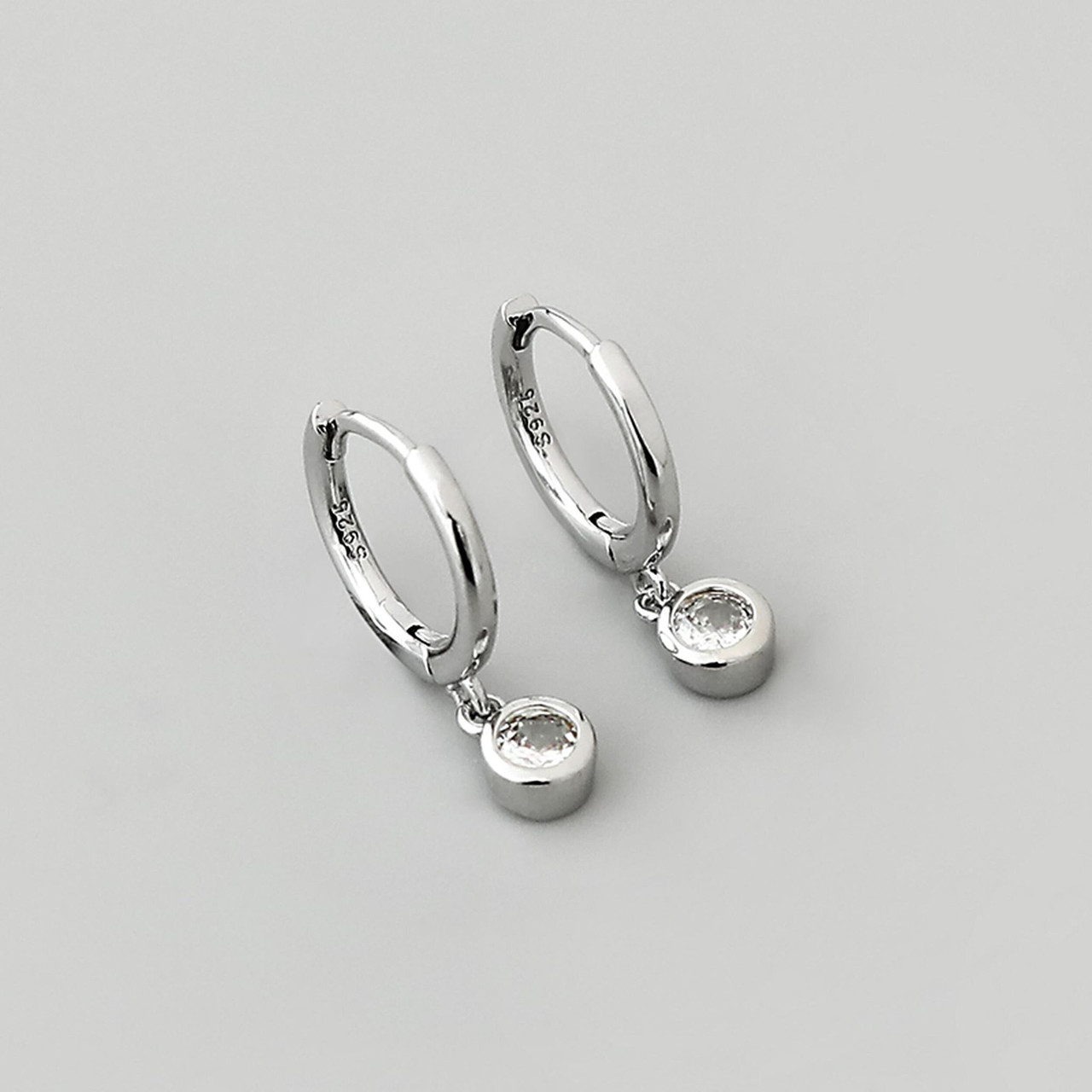 Dainty Small Hoop Huggie Dangle Earrings, Clear Cubic Zirconia Crystal Earrings