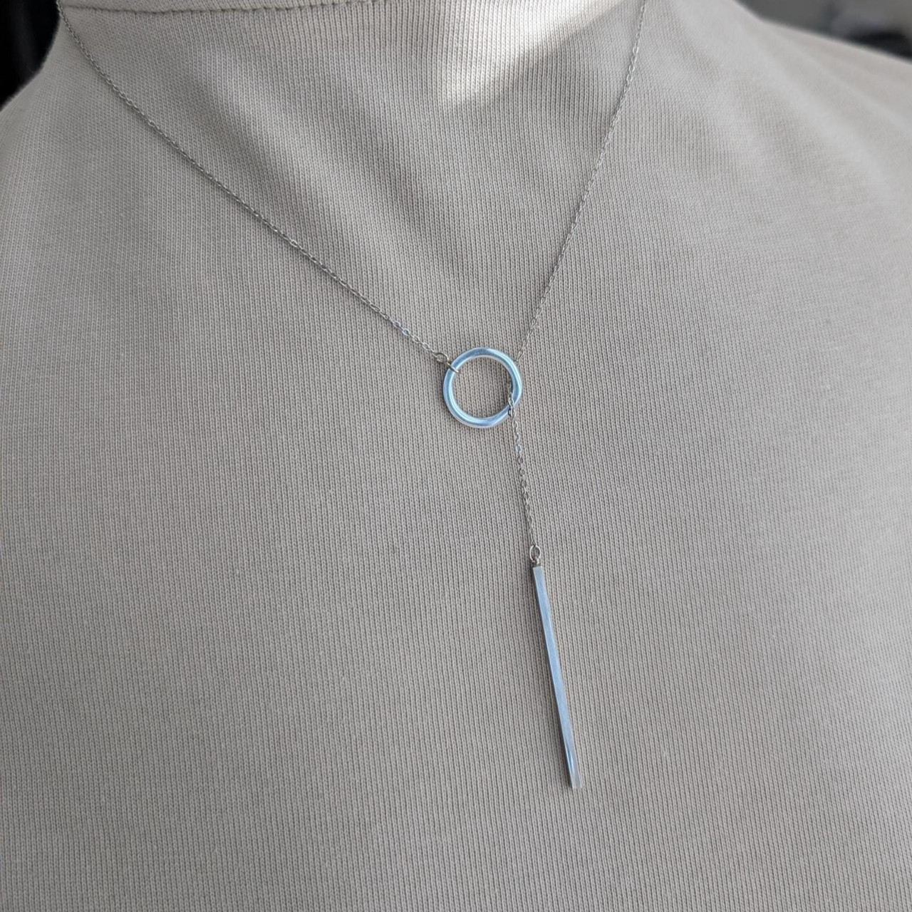 Lariat Bar Circle Link Necklace, Stainless Steel Y Necklace 18", Link Chain UK