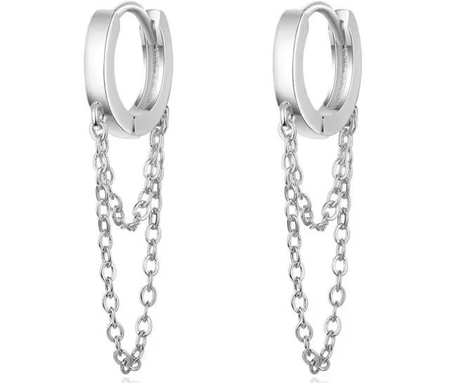 Link Chain Drop Earrings Huggies/Hoops/Sleepers Dangle Sterling Silver Plated