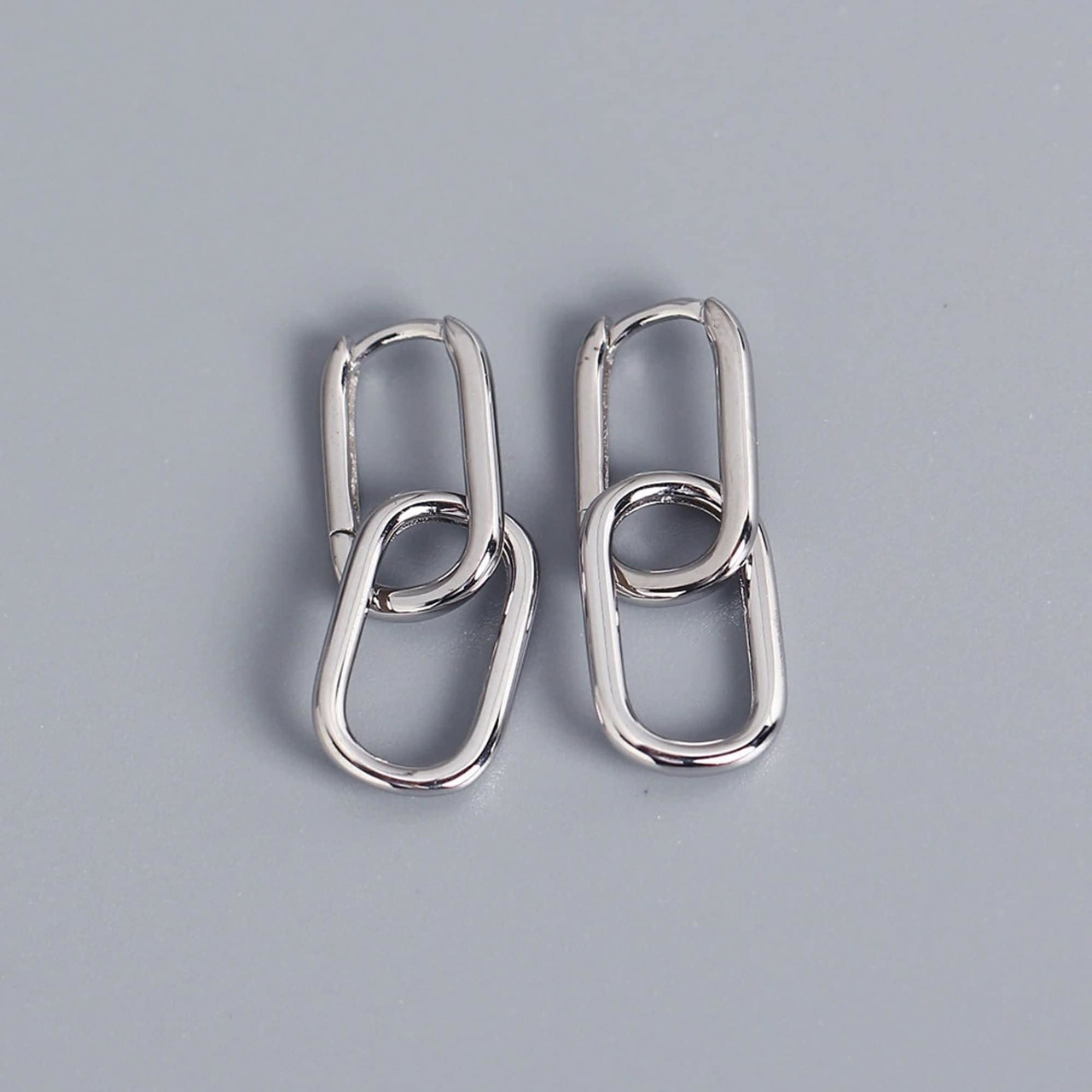 Link Chain Earrings, Silver Drop Dangle Earrings Paperclip, Hook Earrings, Silver Plated Huggie/SleeperEarrings