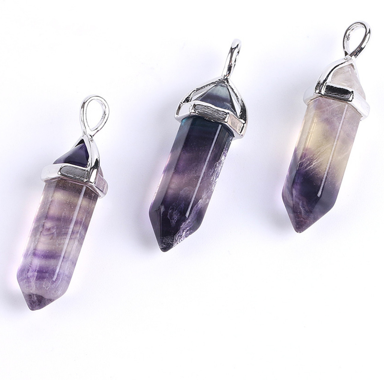 Natural Quartz Fluorite Purple Point Necklace Gemstone Reiki Chakra Healing