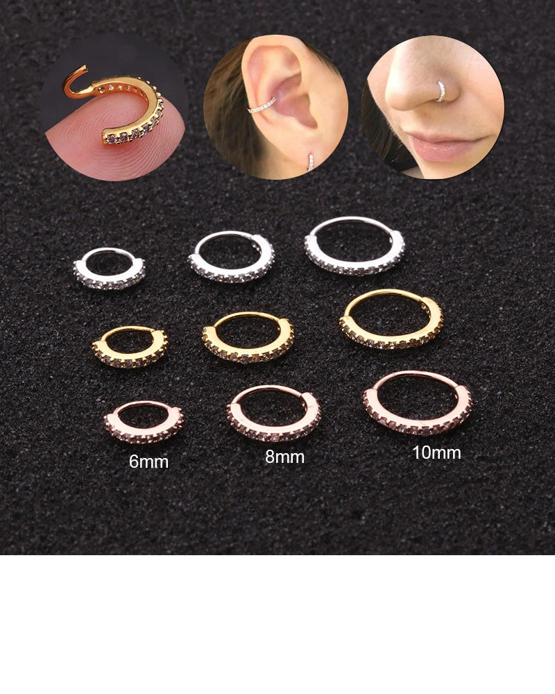 Nose Ring Ear Lip Cuff Crystal Hoops Studs Eyebrow Cartilage Septum Piercings