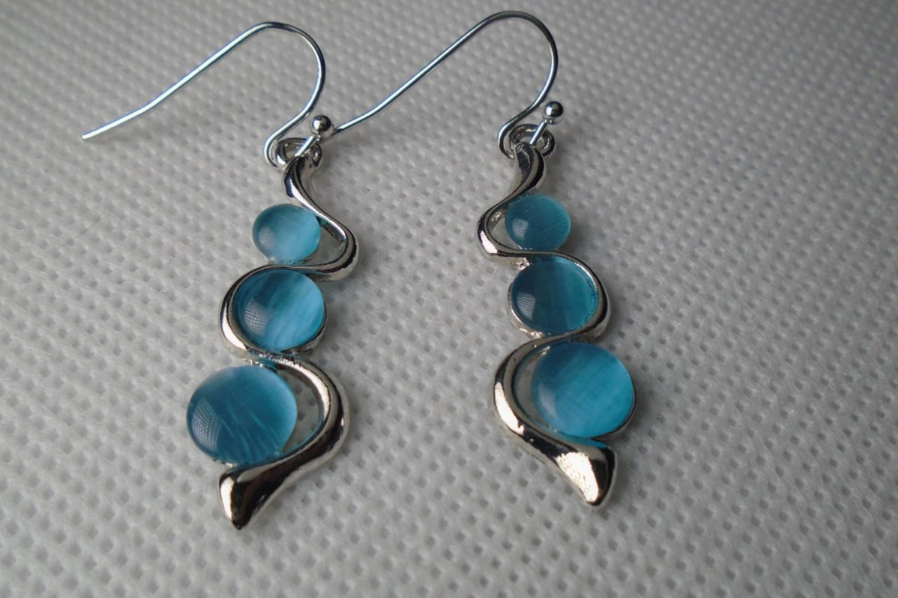 Pale Blue Silver Drop Earrings For Women Triple Stone UK + Bag