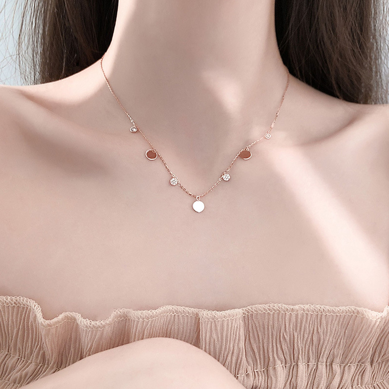 Rose Gold Plated Necklace With Discs & Cubic Zirconia Crystals 40cm + 5cm + Bag
