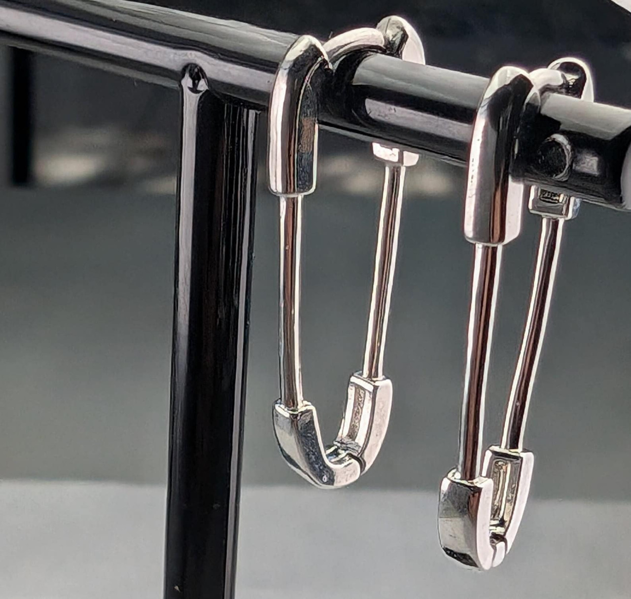 Safety Pin Drop Earrings, Sterling Silver Plated Dangle Earrings, Gift For Her +