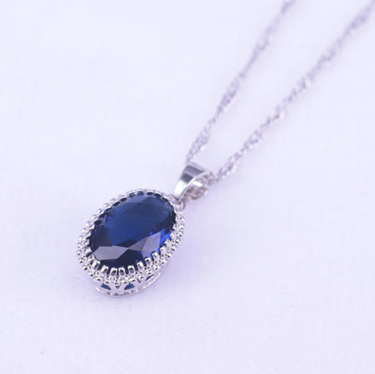 Silver Blue Sapphire Edwardian CZ Pendant Necklace 45cm + Bag UK Womens/Ladies