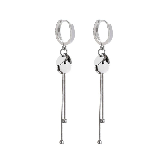 Silver Drop Dangle Earrings Double Disc/Circle Long Tassel With Beads 65mm